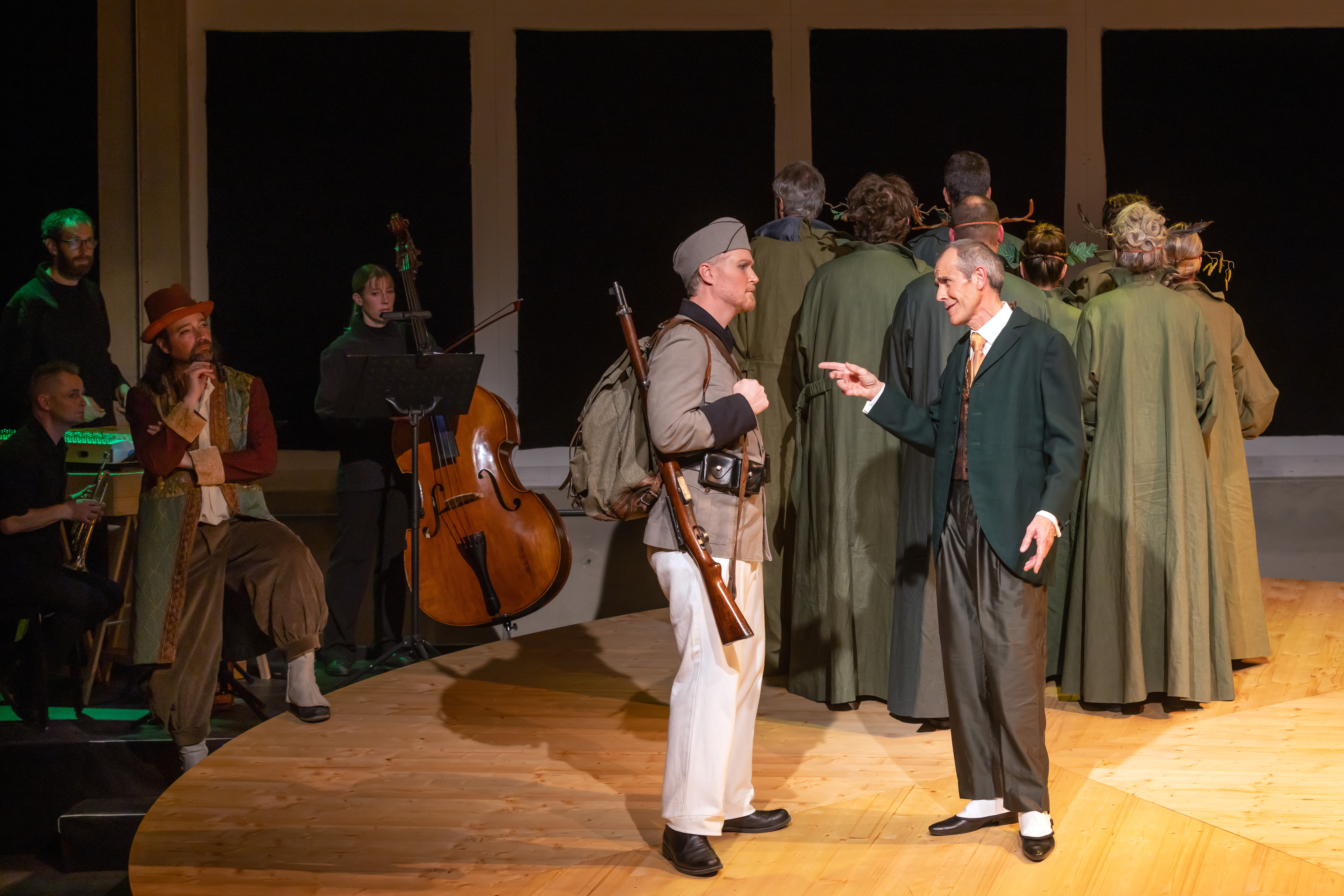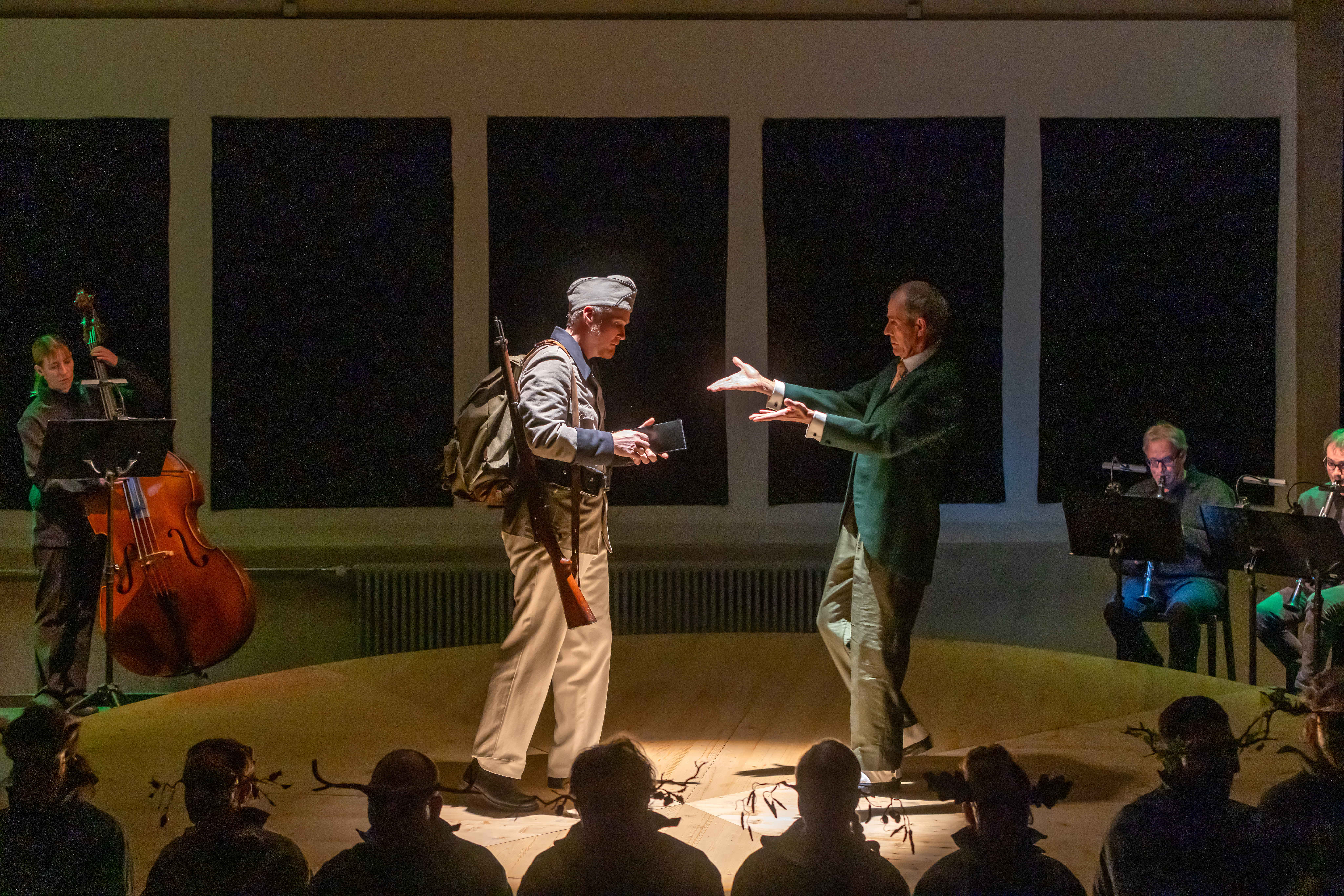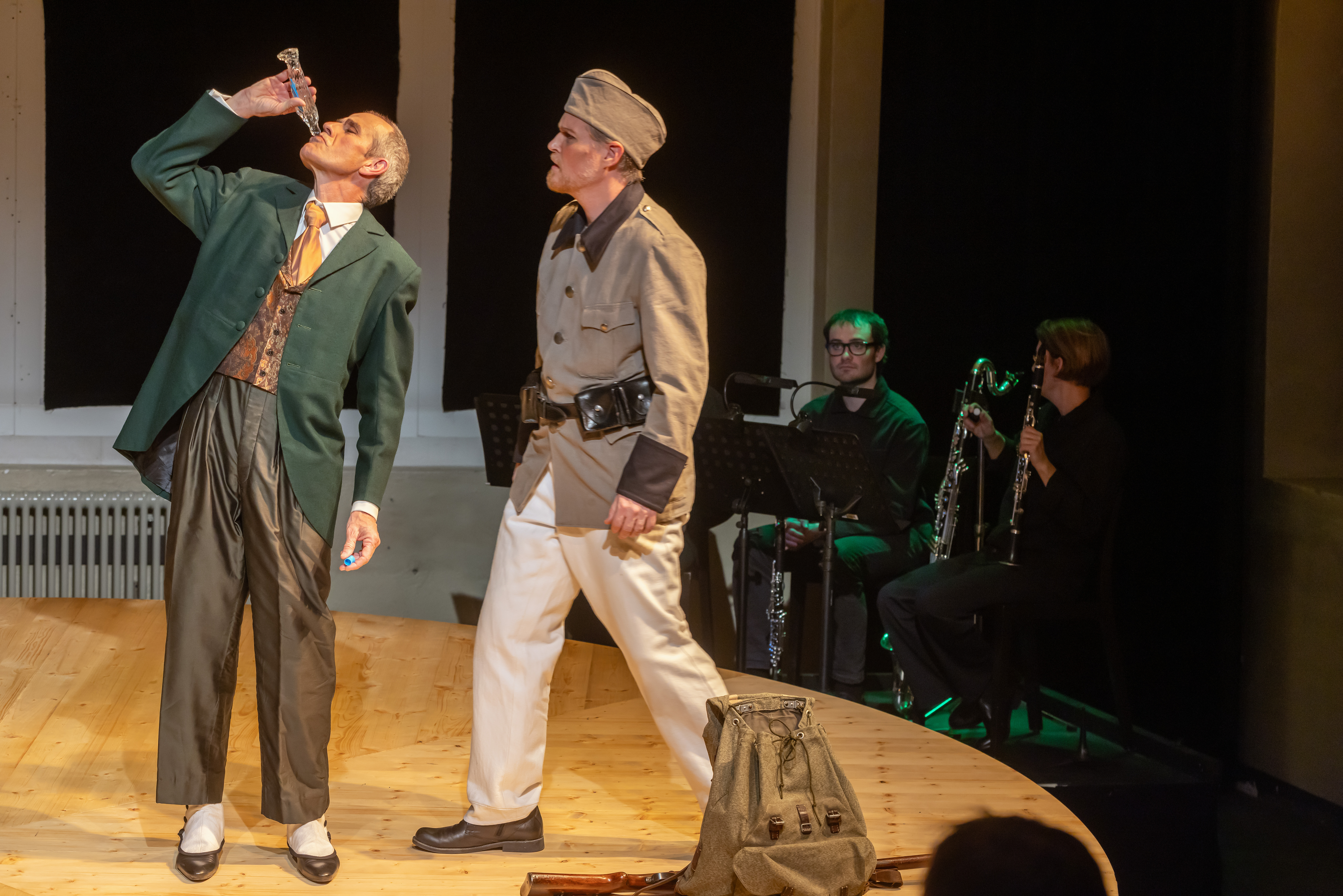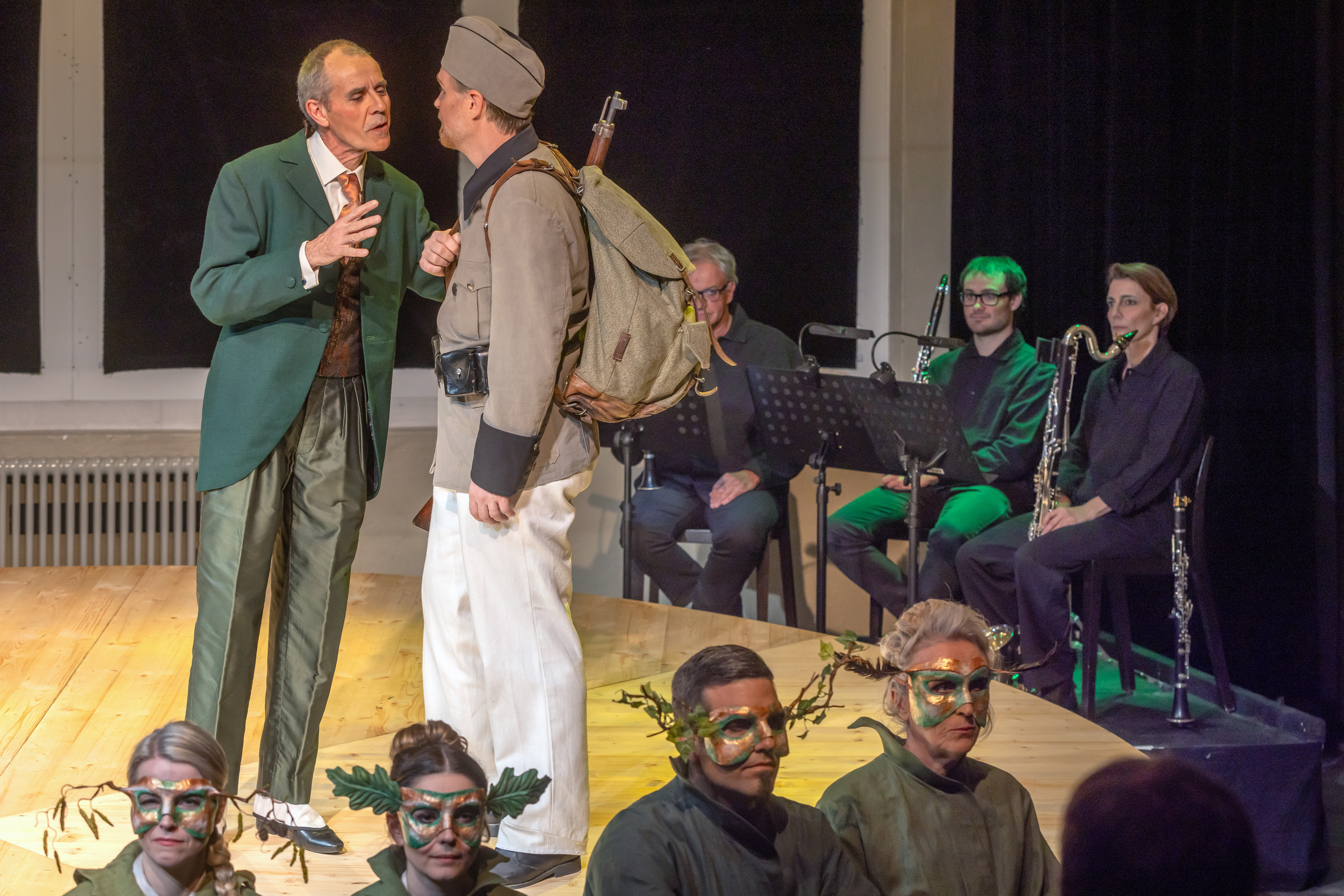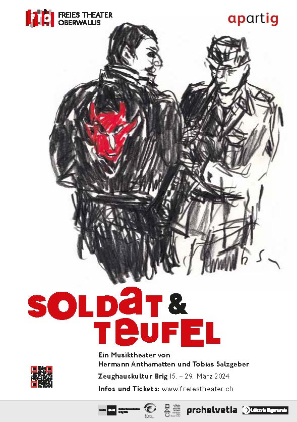 Ausgangspunkt für «Soldat & Teufel» war «Die Geschichte des Soldaten» von Strawinsky/Ramuz, doch Anthamatten und Salzgeber haben für das Freie Theater Oberwallis und apartig ein eigenständiges Werk geschrieben – ohne dabei die Paten zu vergessen.