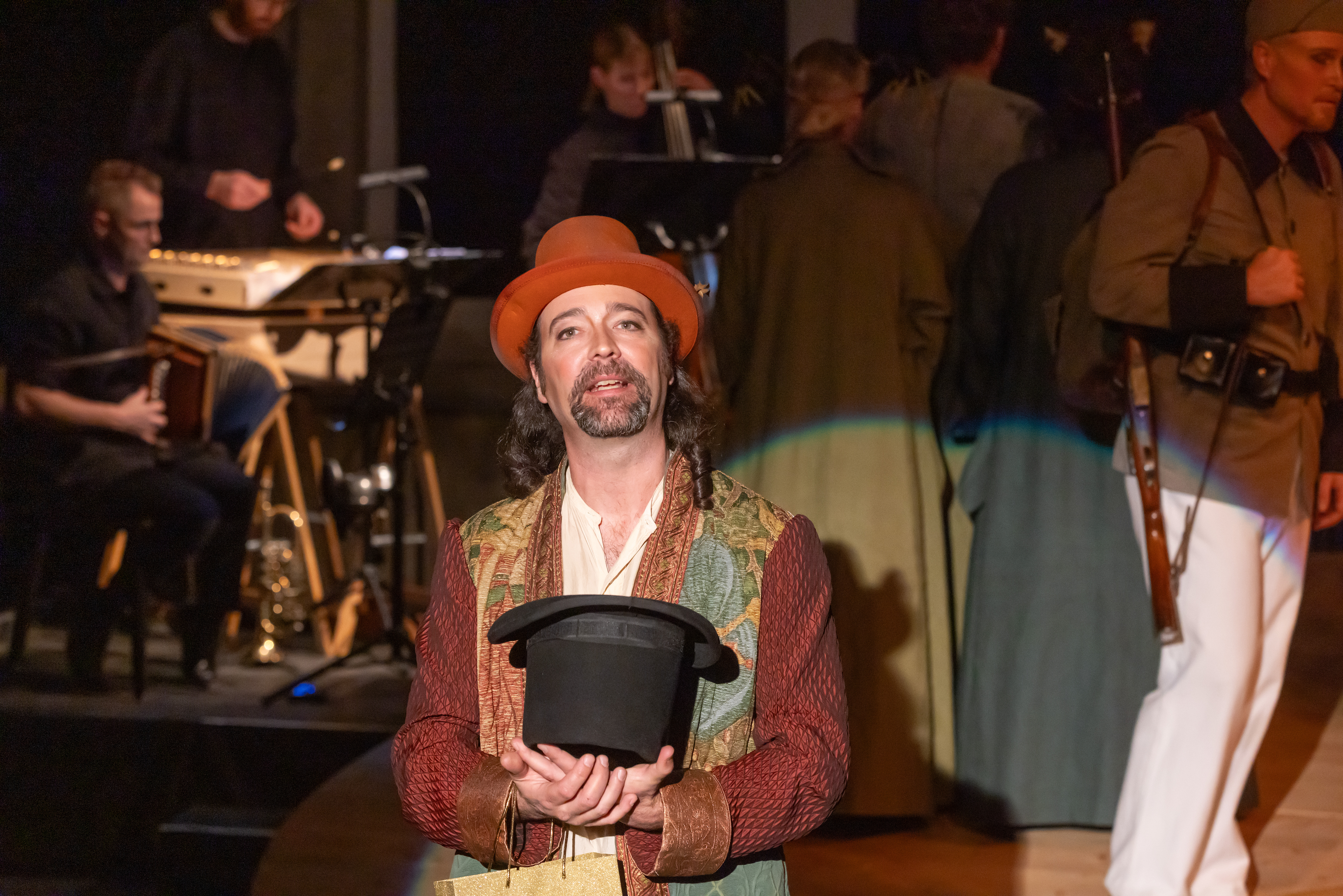 Doch so recht überzeugen lässt sich der Soldat nicht, da sich der Fremde etwas gar seltsam benimmt, mit Zaubertricks arbeitet und ihm unermesslichen Reichtum verspricht, wenn er ihn zu einer musikalischen Soirée begleite. Da willigt der Soldat ein.
