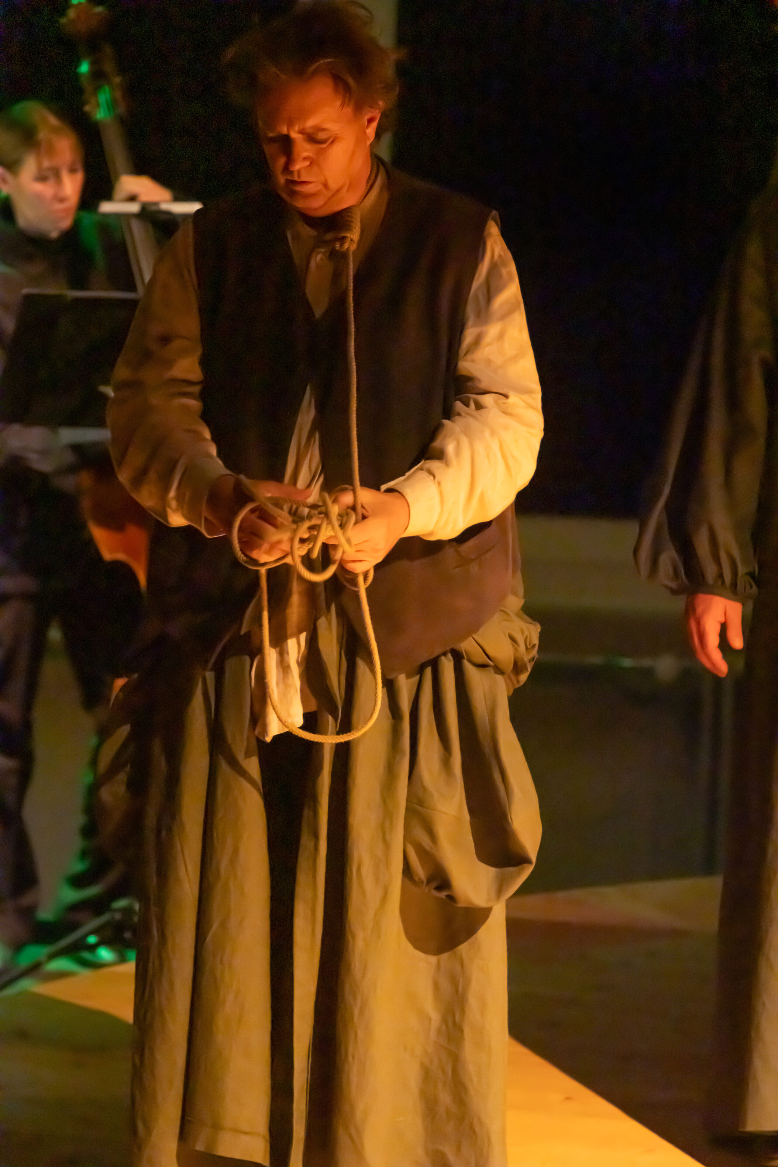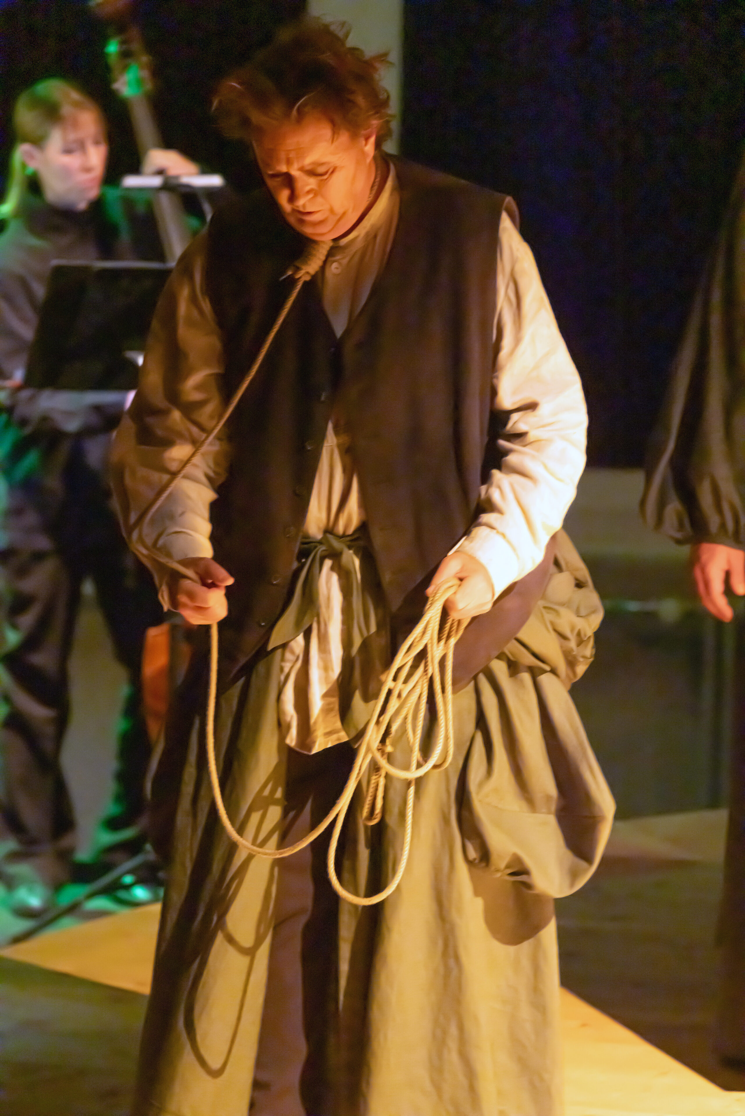Der Fremde versucht ihn zu beruhigen, indem er ihm erklärt, dass dies nur Gesänge aus längst vergangenen Zeiten seien, die erzählt und gesungen wurden, um den Leuten Angst einzujagen, damit sie sich unter der Knute der Herrschenden ducken und so leichter an die Kandare genommen werden können.