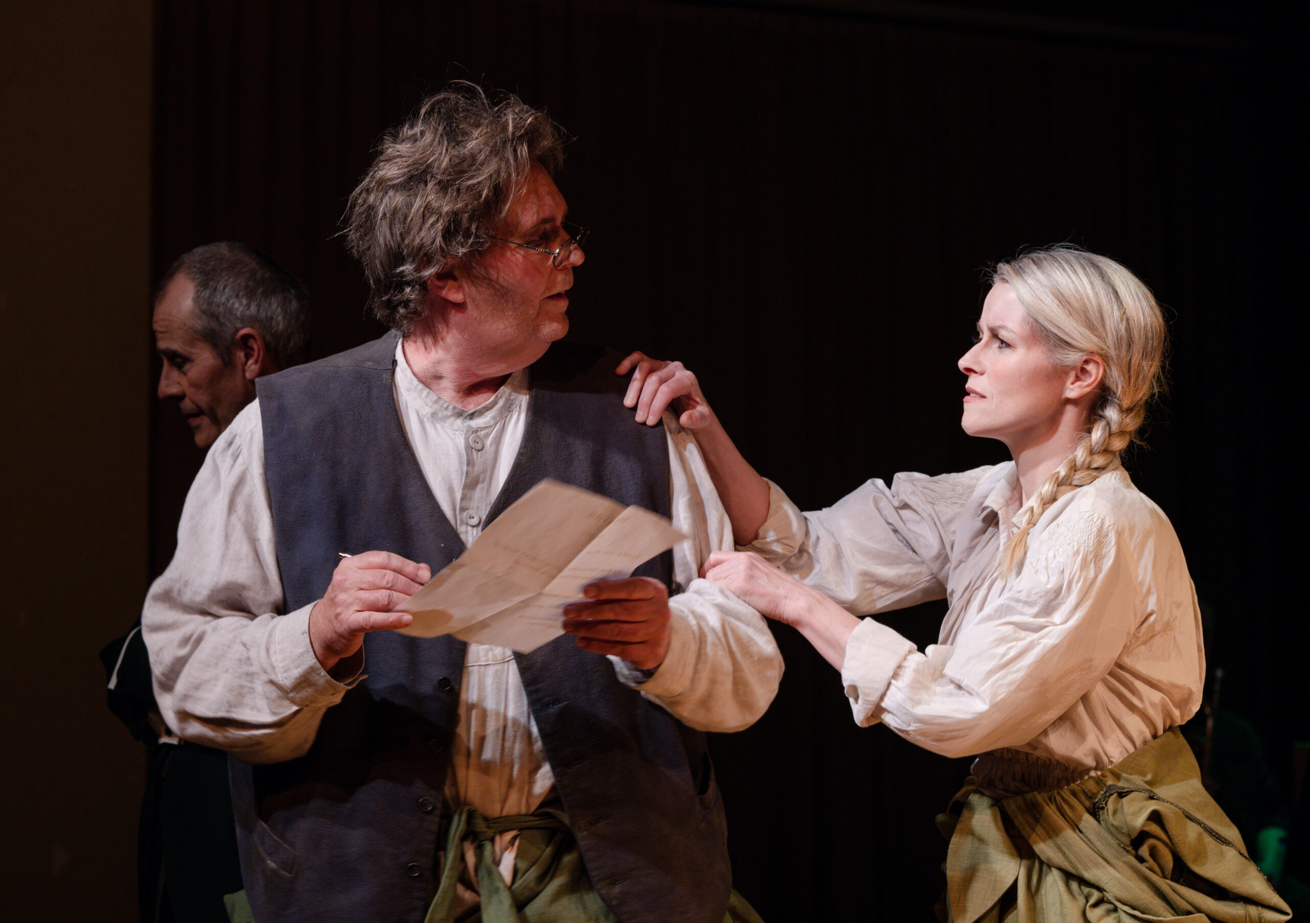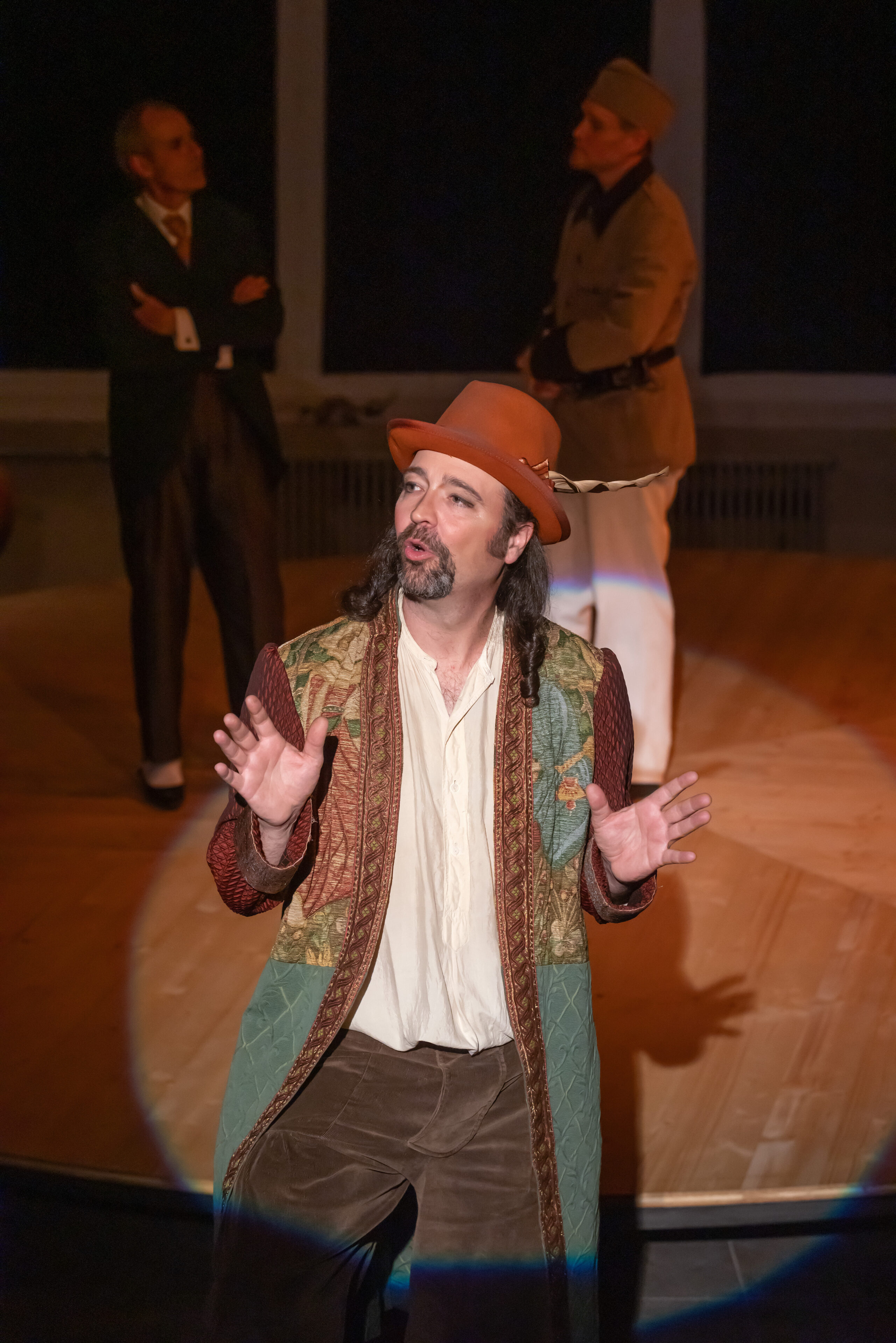 Unterwegs erleben sie einige Abenteuer: Sie treffen auf ein unbereiftes Fass, retten einen armen Mann vor dem Selbstmord, musizieren bei einem verborgenen Tanz, stossen auf eine verzweifelte Schauspielerin und ihren übergriffigen Regisseur.